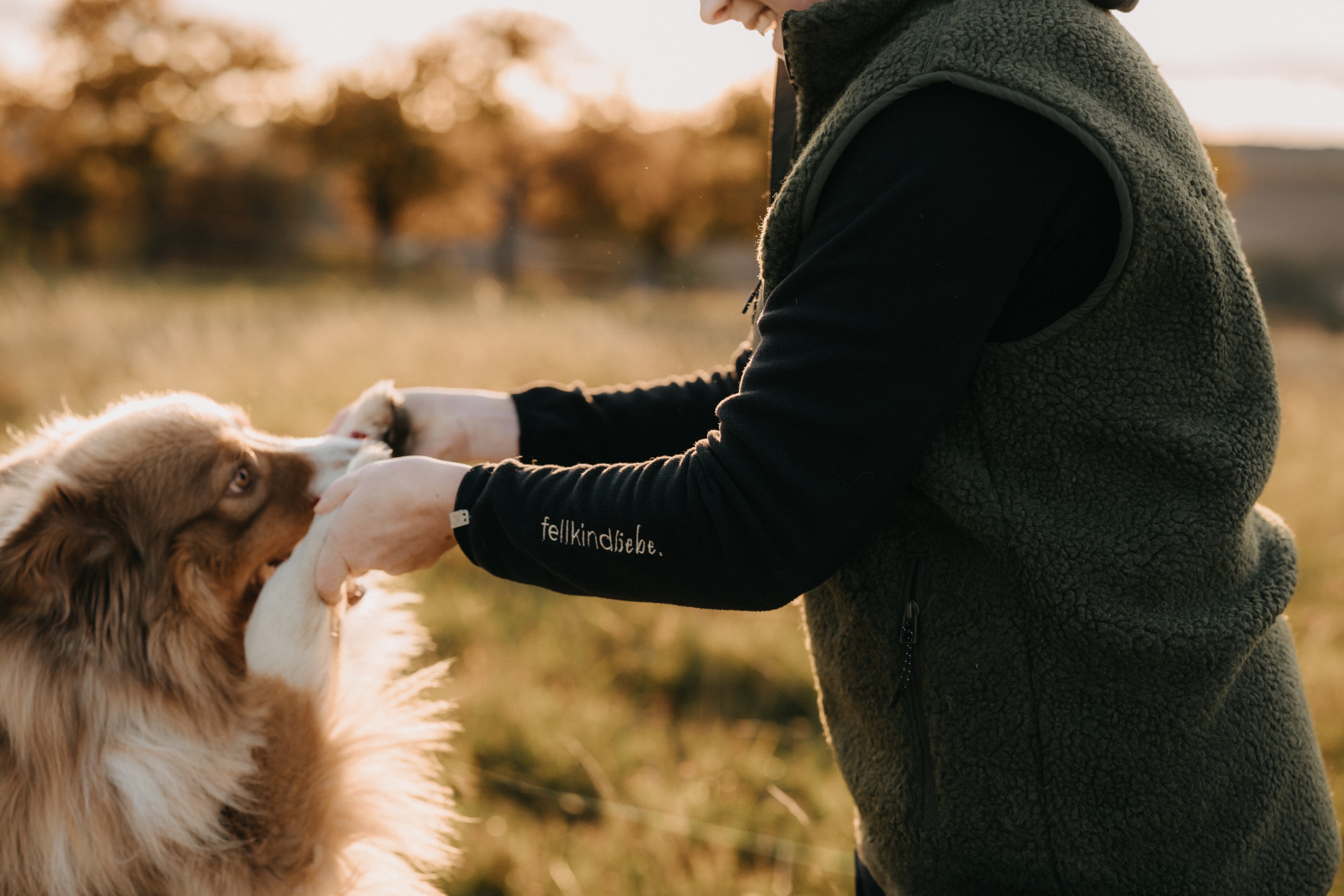 Die fellkindliebe.-Sherpa-Weste ist nicht nur optisch ein absoluter Hingucker, sondern auch einfach mega praktisch für die Streifzüge mit deinen Hunden. Zudem hält sie super warm und trägt sich durch ihren vorteilhaften Schnitt extrem bequem, auch mit einem fellkindliebe.-Hoodie drunter! Nicht ohne Grund ist die Weste zur Zeit unser Bestseller.